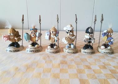 Statuine statuette Personaggi in miniatura realizzati in resina decorata con frasi ironiche e simpatiche, stickers biadesivo incluso.