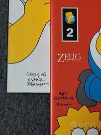 Porta a casa l’umorismo giallo più famoso del mondo 😄: due volumi ufficiali dei Simpson, editi da Zelig Editore con copyright Bongo Entertainment, direttamente dalla mente di Matt Groening ✍️