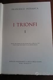 Vendo in ottime condizioni " I TRIONFI " di Francesco Petrarca Istituto Poligrafico e Zecca dello Stato, 1978. 2 voll, cofanetto in tela editoriale, legatura piena pelle marrone, titoli in oro al dorso, ritratti in oro ai piatti anteriori. carta robusta rifilata a mano esemplari a tiratura limitata e numerata.Illustrati nella miniatura da codici al XIII al sec. XVI studio di Sergio Samek LudoviciI in 1000 copie (ns 733) ottimo stato di conservazione . Il cofanetto misura 46 x 33 x13.