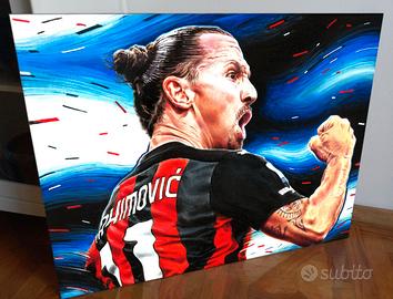 Zlatan Ibrahimovic A.C. Milan, Riproduzione su Tela - Stampa su tela già montata su telaio pronta all'uso per essere appesa e /o esposta. dimensione cm. 100x75. Ideale come regalo e/o complemento d'arredo.