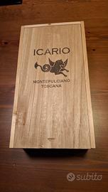 Confezione in legno con due bottiglie di Icaro vino nobile di Montepulciano Toscana del 2003
