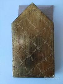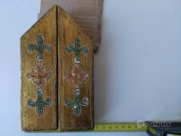 Legno, stucco, dorature antiche, riproduzione del dipinto, cerniere metalliche.