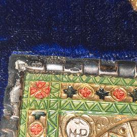ICONA IN ARGENTO BEATA VERGINE DETTA LA NICOPEJA -PROTETTRICE DI VENEZIA, CHE SI VENERA NELLA INSIGNE BASILICA DI S.MARCO IN VENEZIA. OGGETTO PREZIOSO E MARCHIATO PASSONI - FAMOSISSIMA GIOIELLERIA PASSONI DI VENEZIA- LO SCRIGNO ORIGINALE ANNI 20/30. IMMAGINE ICONA mis.6,7x8,2cm
