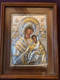 Icona in metallo bizantina greco ortodossa. Madonna con bambino con cornice cm26,5*20*3