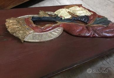 Antica Icona in rilievo su tavola Madonna nera di Czestochowa dipinta ad olio 37 x 28 cm