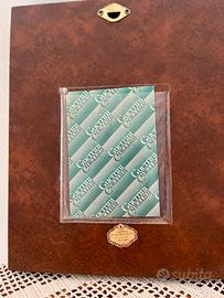 Immagine sacra della Madonna col Bambino della collezione Guerrini. In lamina oro 24 K e argento 925. Cornice in radica di noce