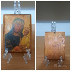 Icona religiosa realizzata su tavoletta in legno in stile bizantino. Condizioni buone, con naturali segni di usura. Altezza 14 cm Larghezza 10 cm