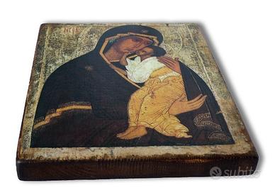 Icona antichizzata ed eseguita interamente a mano su legno.