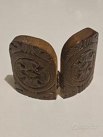 Icona religiosa in legno raffigurante la Madonna con il Bambino Gesù e Gesù Cristo. - Icona a libro. - Dipinto su legno. - Dettagli dorati.