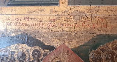 Le scene sono accompagnate da iscrizioni originali in slavo ecclesiastico dipinte in rosso, perfettamente coerenti con l’iconografia e la liturgia ortodossa.