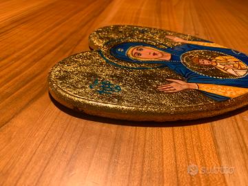 Icona su legno a forma di cuore realizzata a mano. Dimensioni 18x20 xm circa
