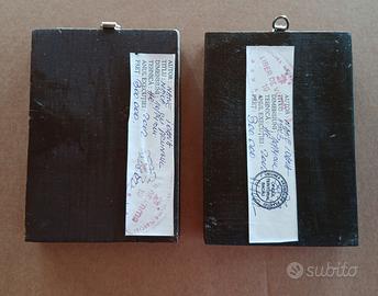 Icone Rumene dipinte a mano su legno raffiguranti il Cristo e Madonna con bambino. Realizzate nel 2002 e timbrate dall' Uniunea Artistilor Plastici professionali. Si presenta come è stata acquistata. Artista Nane Ioana. Larghezza