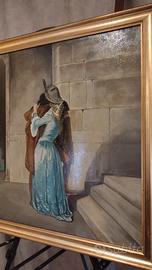 Riproduzione ad olio su tavola dell'opera /IL Bacio di Francesco Hayez 1859 circa / quello che ho realizzato e' un lavoro passionale e minuzioso di olio su tavola una base e poi pittura ad olio medio essiccante con finitura lucida invecchiante il risultato e' eccellente e lo si puo' constatare guardando le foto . Mi sono sempre occupato di riproduzioni classiche e illustrazioni preferibilmente ad olio offro questa perla con certificato cornice e spedizione gratuita veramente imperdibile !!!!misure senza cornice 60x60 pronto per essere appeso .invio tramite corriere ups massima serieta'