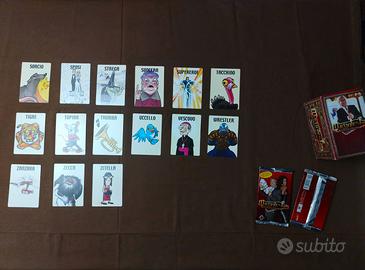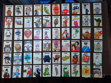 Per Le singole Carte Invece è 1 € a Carta (2 € a Coppia) 1,50 € 🔴 Carta Rossa del mercante 1,50 € 🔵 Carta Blu per Il giocatore Le Carte Elenco: • Accattone • Alieno • Apparecchio • Arrotino • Baccello • Bacio • Bagnino • Bandana • Becchino • Bollito • Brasiliana • Cannone • Cannottiera • Capra • Carciofo • Cervo • Cinese • Clown • Corna • Cozza • Cuore • Donna Barbuta • Fagiano • Fatina • Fico • Finocchio • Gladiatore • Gobbo • Gufo • Hamburger • Ladro • Maestra • Mago • Maiale • Mamma e Papà • Minestrina • Mucca • Mummia • Naufrago • Palline • Pantera • Parrucchino • Pere • Pirata • Pizza • Pollo • Pompiere • Principe • Puntura • Puzzola • Rana • Salame • Serpente • Sirena • Somaro • Sorcio • Sposi • Strega • Suocera • Supereroe • Tacchino • Tigre • Topina • Tromba • Uccello • Vescovo • Wrestler • Zanzara • Zecca • Zitella Tipo di Carte: Lucide Plastificate Condizioni: Appena Scartata dal Pacchetto Anno di Distribuzione: 2006 Disegante da: Claudio Sciarrone Programma Tv: Il mercante In Fiera Rete: Italia 1 Emittente: mediaset Licenza: magnolia R.T.I