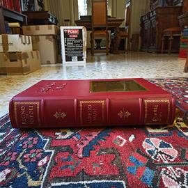 La lavorazione totalmente artigianale rende ogni volume un pezzo unico, forgiato dalle mani di sapienti artigiani che danno valore univoco alle pagine di questa opera impareggiabile.