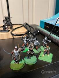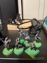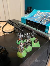 Set di 6 miniature di cui 3 in metallo dei personaggi principali (Aragorn, Frodo, Orco) e tre in platica dei soldati semplici. Per appassionati del mondo fantasy è un vero capolavoro da collezione! Datati intorno ai primi anni 2000, uscirono poco dopo il primo film della celebre saga. Per qualsiasi info scrivete pure!