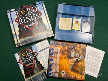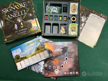 Vendo la collezione completa del leggendario gioco da tavolo cooperativo "Il Signore degli Anelli" di Reiner Knizia, arricchito dalle illustrazioni originali di John Howe. Un pezzo di storia del boardgaming, perfetto per gli amanti di Tolkien e per chi cerca una sfida tattica di alto livello. Il lotto include il gioco base e le tre espansioni introvabili che completano l'esperienza: - Il Signore degli Anelli (Gioco Base) ITA: La sfida cooperativa per distruggere l’Anello. - Espansione Friends & Foes (Amici e Nemici) ENG: Aggiunge gli scenari di Brea e Isengard e il mazzo dei nemici. - Espansione Sauron ITA SOLO APERTO: Permette a un giocatore di sfidare gli altri nei panni dell'Oscuro Signore. - Espansione Battlefields (Campi di Battaglia) ENG RARO e INCELOFANATO: Introduce le battaglie campali e nuovi personaggi della Compagnia. Stato del prodotto: Lingua: italiano e inglese (Ed. Editrice Giochi / Fantasy Flight Games). Condizioni: Ottime condizioni. Note: Carte, oggetti, regolamenti originali inclusi.