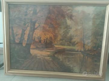 riproduzione artistica di grandi dimensioni del quadro "il silenzio nel bosco" del pittore A, Jacobsen proveniente dall'estero a giudicare la robustezza della cornice. La tecnica della riproduzione ricorda i tratti delle pennellate che sono presenti sull'originale. In considerazione delle dimensioni dell'oggetto e la presenza del vetro si suggerisce il ritiro in loco.