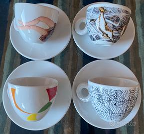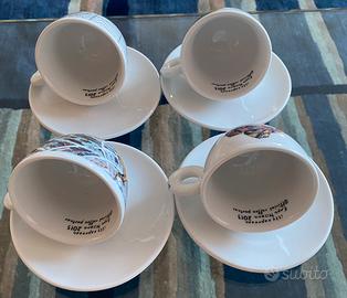 4 tazzine cappuccino decorate, scritta all’interno “illy espresso official coffee partner”.