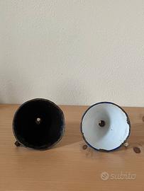 Vecchi Imbuti in latta smaltata, uno di colore bianco e uno Nero