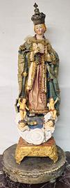 Immacolata realizzata nella seconda metà dell’Ottocento,in terracotta modellata e dipinta a mano, con struttura in stoppa e occhi in cristallo, incoronata con una corona in argento,