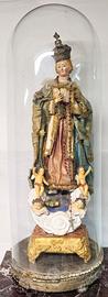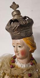 -Materiali: terracotta policroma, stoppa, tessuto, argento (corona), occhi di cristallo