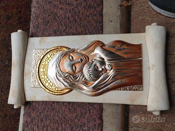 vendo immagine sacra, argento e base in gesso credo, largento e divenuto rosa. credo sia perché in un ambiente umido.no spedizione
