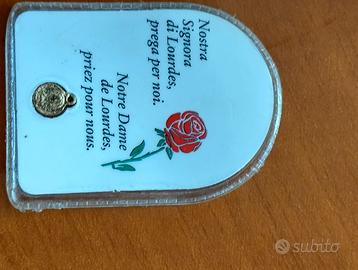 Immagine votiva Madonna di Lourdes, con medaglietta, pastificata. Nuova. #lourdes