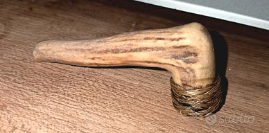 impugnatura da bastone in corno di cervo di fine 1800, completa di ghiera in fili d ottone intrecciati. bel pezzo per restauri.