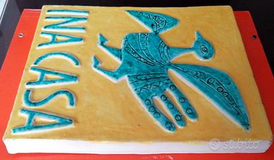 Splendida, iconica e ormai introvabile targa in maiolica policroma realizzata nel corso degli anni 50 dall'artista faentino GUERRINO TRAMONTI per il piano INA Casa. La targa è integra, ovvero mai posta in opera, e nonostante i suoi 70 anni si presenta in ottimo stato, il tutto come da foto allegate e ben si presta quale complemento d'arredo per studi tecnici e per appassionati d'architettura ovvero della storia dell'edilizia popolare degli anni 50.