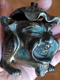 Bruciaincenso amuleto vintage prima metà secolo scorso in bronzo a forma di fauno, satiro o demone.
