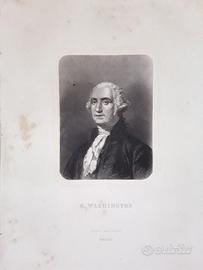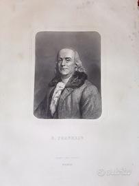 Coppia di stampe di metà Ottocento di Franklin e Washington. Misurano ciascuna cm. 26,5x17. Il prezzo s'intende per la coppia