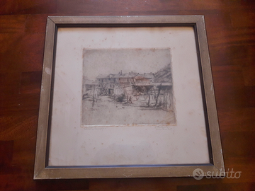 Incisione di Nello Pasquali, firmata dal maestro e datata 1945, con cornice e vetro.