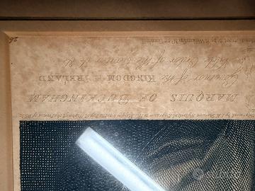 Incisione originale inglese del XVIII secolo, Londra, raffigurante il nobile britannico e Cavaliere dell’Ordine della Giarrettiera. Carta originale, stemma araldico inciso, provenienza collezione privata.