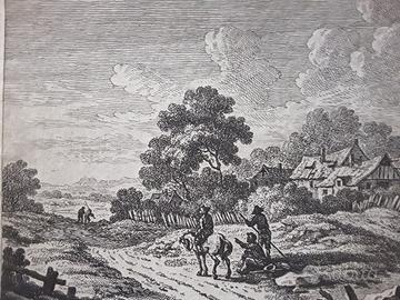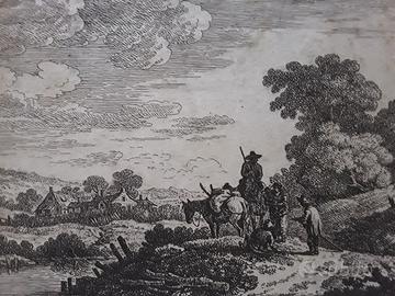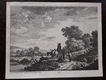 Coppia di incisioni originali su rame della metà del Settecento del celebre incisore Johann Cristoph Dietzsch, "Radierung". Misurano ciascuna cm. 19x15. Il prezzo s'intende per la coppia.