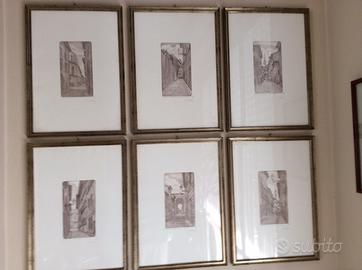Incisioni n6 su lastra di rame di Viviano Viviani degli anni 60 raffiguranti i borghi di Firenze minore.