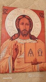 Quadro Icona Cristo Pantocratore Stampa D'epoca su Legno spessore 16 millimetri Alto 46 cm x 32