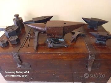 vendo incudini varie dimensioni, morsa verticale, ceppo per incudine, oggetti vari. tutto restaurato.