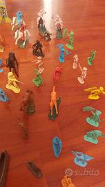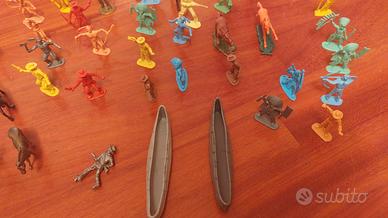 In plastica n. 6 figurini cm 8 n. 62 figurini cm 6 1 recinto 2 muretti 3 steccati 2 canoe cm 14 1 totem cm 20 Ottimamente conservati
