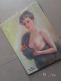 INES NUDA CON PELLICCIA è un dipinto olio su tela che rappresenta una bellissima ragazza che indossa una pelliccia di volpe mostrando il suo bellissimo seno molto proporzionato al suo corpo snello con un viso angelico. Dipinto ottimo per collezionisti