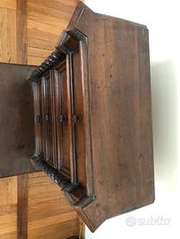 Inginocchiatoio antico umbro del XVIII secolo in noce a quattro cassetti, laterali a colonnine decorate a tortiglione. Misure: altezza cm 86, larghezza cm 63, profondità cm 47.