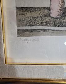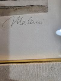 Innocenzo Melani: Artista toscano noto per le sue figure femminili eteree e le sue nature morte. Il suo stile è spesso associato a una ricerca di leggerezza e soavità cromatica, perfettamente in linea con la delicatezza dell'opera. La scritta in basso a sinistra "P.S. acquerellata" indica che questo esemplare è uno dei primi fogli impressi dall'artista per verificare la resa della lastra, fuori dalla tiratura numerata standard. Questo ne aumenta il valore collezionistico. "Acquerellata" (in basso a sinistra) conferma che il colore, il rosa del vaso e dei fiori, il verde delle foglie, è stato applicato a mano con l'acquerello dopo la stampa, rendendo ogni esemplare di questa serie tecnicamente unico. Si tratta di una natura morta raffigurante un vaso cilindrico di colore rosa che contiene un mazzo di rose o fiori simili in boccio. Lo stile è caratterizzato da un segno grafico fitto e vibrante (tipico della morsura all'acido dell'acquaforte) che crea volume e ombreggiatura, in contrasto con lo sfondo neutro e minimale. Dimensioni: 25x20 Cornice e vetro protettivo. Tecnica: acquaforte acquarellata. Prova di stampa.