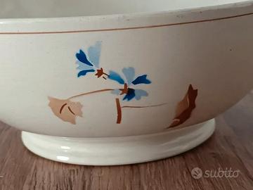 Vendo un'insalatiera S. C. Richard - San Cristoforo del 1946. Pezzo storico di manifattura italiana in terraglia. Ideale per collezionisti o per arredo country/vintage. Integra, ma con scalfittura sul bordo. Disponibile, della stessa linea, NON incluso nel prezzo, anche un piatto da portata. Circonferenza: 72 cm, Diametro: 24 cm, Altezza: 10 cm, Base: 13 cm