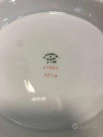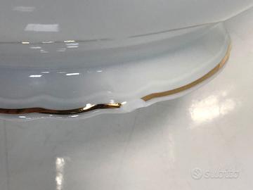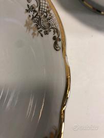 Insalatiere in porcellana Ginori con decori a motivi floreali stilizzati in oro zecchino risalenti agli anni 30 e 50; disponibili 2 pezzi perfettamente identici aventi diametro max 23cm e altezza 8cm risalenti alla fine anni 50 (una perfetta e altra con piccola sbeccatura sul bordo come foto) e 1 pezzo avente diametro max 27cm e altezza 10cm risalente al 1939 con piccola sbeccatura sul bordo della base come foto. Decori in più che ottime condizioni. Vendo le 2 identiche anni 50 preferibilmente in coppia a 70 euro totali e quella del 1939 a 40 euro. Altre foto disponibili a richiesta. VALUTO OFFERTE INFERIORI ALLA RICHIESTA PURCHE' CONGRUE. Spedizione possibile se necessaria. Vigonza - Padova.