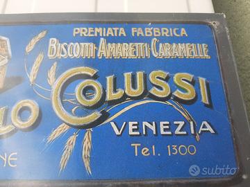 Targa in rilievo della ANGELO COLUSSI PREMIATA FABBRICA BISCOTTI AMARETTI CARAMELLE NUOVA in lamiera ancora nel celofan centimetri 30 x 16 vendesi euro 35 piu eventuali spese di spedizione visibile e ritirabile prov. BOLOGNA per ulteriori info tel 3387789693