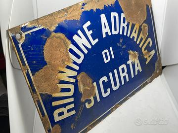 Insegna in latta smaltata anni 50 - Riunione Adriatica di Sicurtà