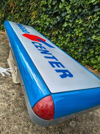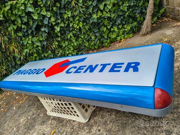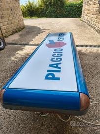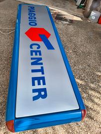 Rara insegna luminosa "Piaggio Center" 200 cm x 60 cm . L'articolo è in buone condizione, presenta un paio di graffietti e le uniche parti leggermente scolorite sono gli angoli rossi ( visibili in foto ). L'insegna è funzionante e originale dei concessionari Piaggio , datata tra gli anni '90 e i primi anni 2000. Ritiro a mano Roma zona Casalotti.