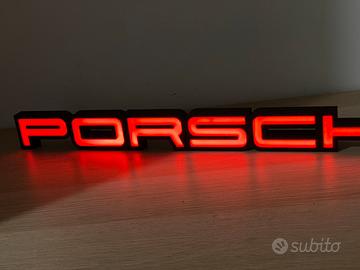 Elegante insegna luminosa Porsche, perfetta per collezionisti, appassionati del marchio o per arredare con stile ambienti dedicati al mondo dell’automotive.