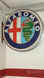 Vendo insegna luminosa integra "Alfa Romeo" degli anno 70 in vetroresina, diametro si 110 cm, con staffa a muro
