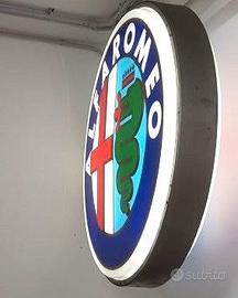VENDO BELLISSIMA INSEGNA RIVENDITORE ALFA ROMEO ALFA ROMEO LUMINOSA BIFACCIALE, MISURA 110 CM DI DIAMETRO CON STAFFA.
